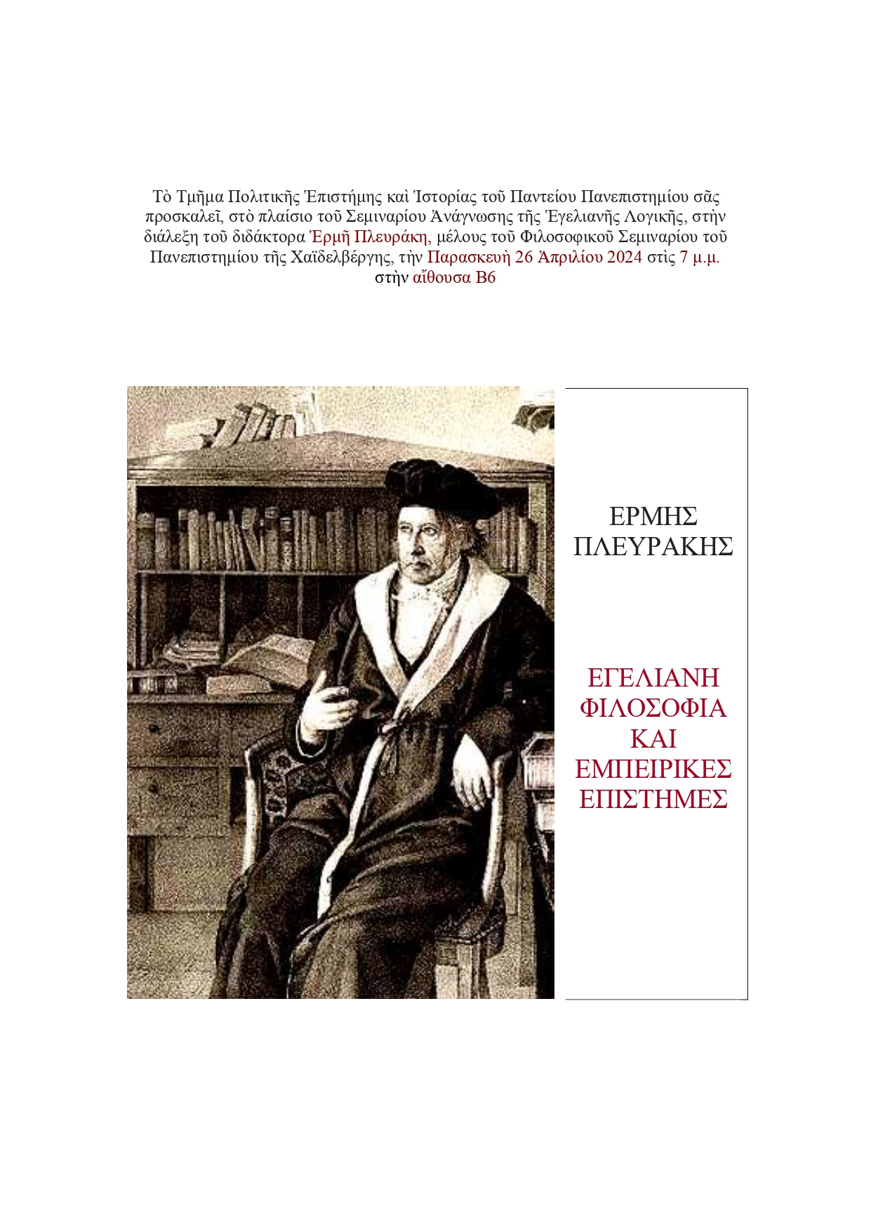 Σεμινάριο Ἀνάγνωσης τῆς Ἑγελιανῆς Λογικῆς (γ΄ περίοδος) (Ἐλεύθερο σεμινάριο)