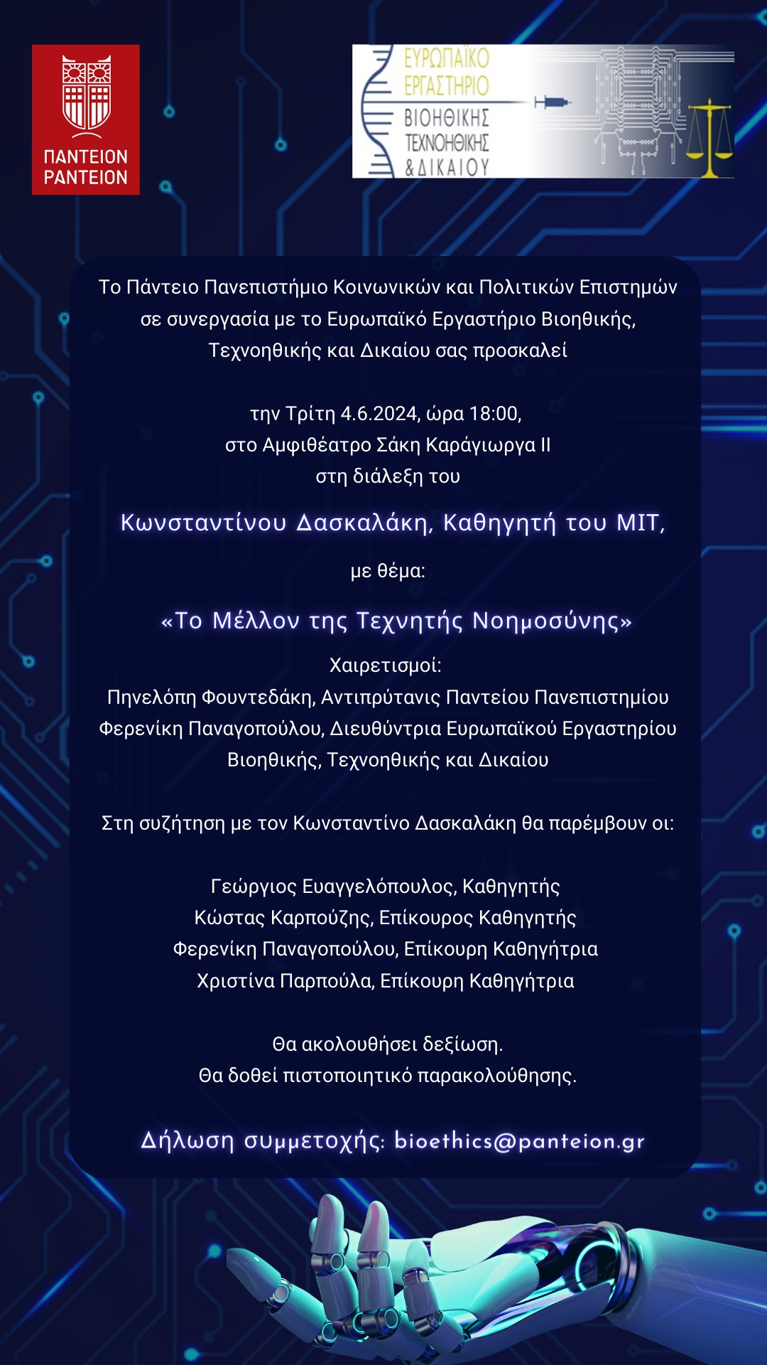 Κωνσταντίνος Δασκαλάκης - "Το Μέλλον της Τεχνητής Νοημοσύνης" - Ομιλία στο Πάντειο - 4.6.2024 - ΑΦΙΣΑ 328.24 KB29/5/24